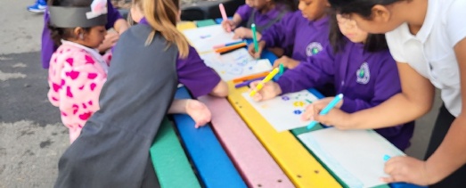 In Year 5, we start a project called "Big Friends, Little Friends" (BFLF), which is when we partner Year 5 children with children in the Reception classes. Throughout the year we will be working on different projects which will go across ma