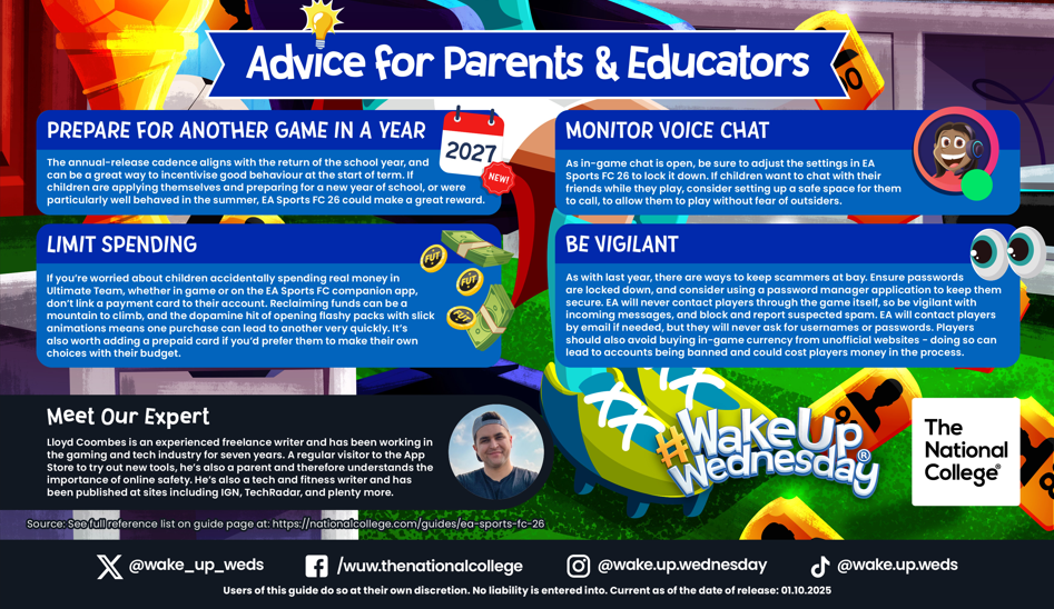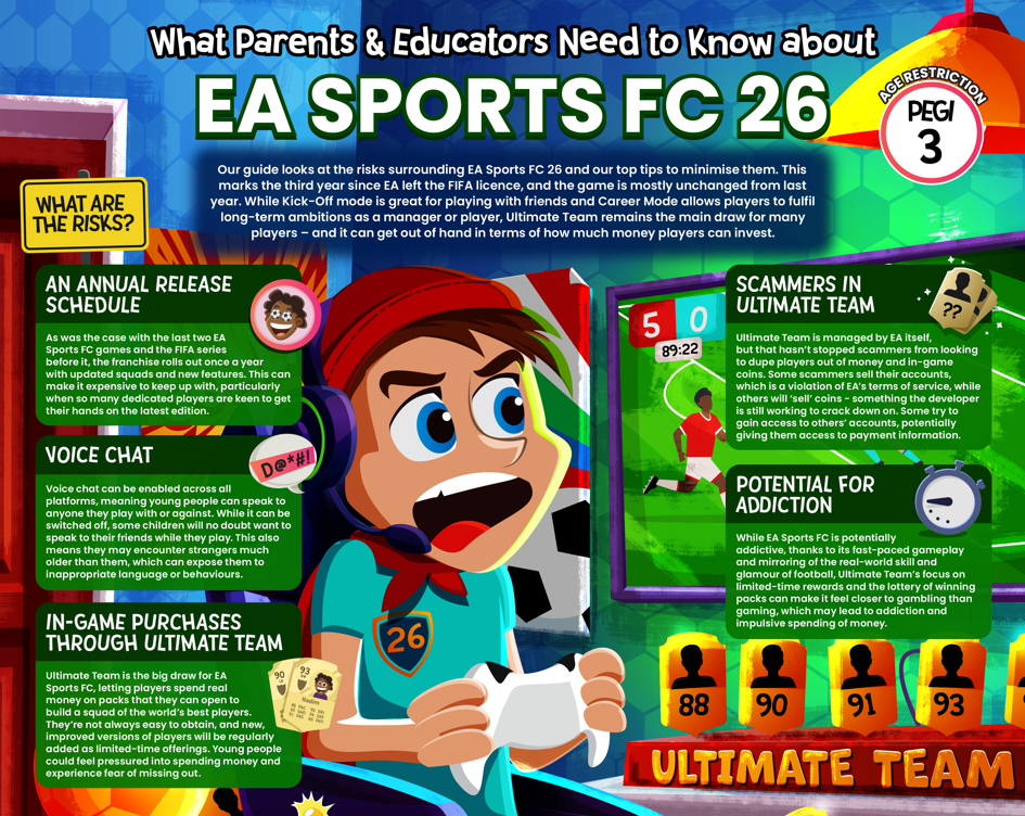Kick-off caution! EA FC 26 brings back all the footballing fun but with potential #OnlineSafety concerns around voice chat, in-game purchases and scams, our #WakeUpWednesday guide gives trusted adults the full picture.