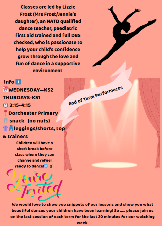 Please see information below for details on a brand new dance class at Dorchester - email frostlizzie@gmail.com to register