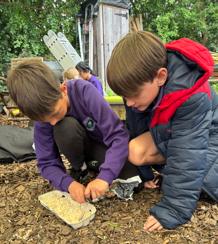 Our Forest School provision offers children a rich, hands-on learning experience rooted in nature. Set within our own outdoor space, pupils explore, discover and learn through regular sessions that build confidence, resilience and curiosity. Children care for our resident chickens, learning responsibility and empathy first-hand, and investigate our on-site ponds, where they observe wildlife and seasonal changes up close. Through practical activities such as shelter building, nature crafts and environmental exploration, Forest School supports wellbeing, teamwork and a deep respect for the natural world, complementing classroom learning in a truly memorable way.