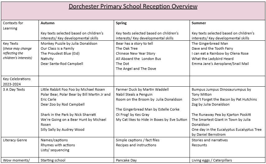 Here at Dorchester we recognise that starting school is a very exciting milestone for you and your child. We make learning in Reception fun and enjoyable, allowing children to feel safe and secure. We thrive off strong partnerships with parents and caregivers from the very start to ensure transitions are smooth and everyone is involved in their child’s learning process from the beginning.
